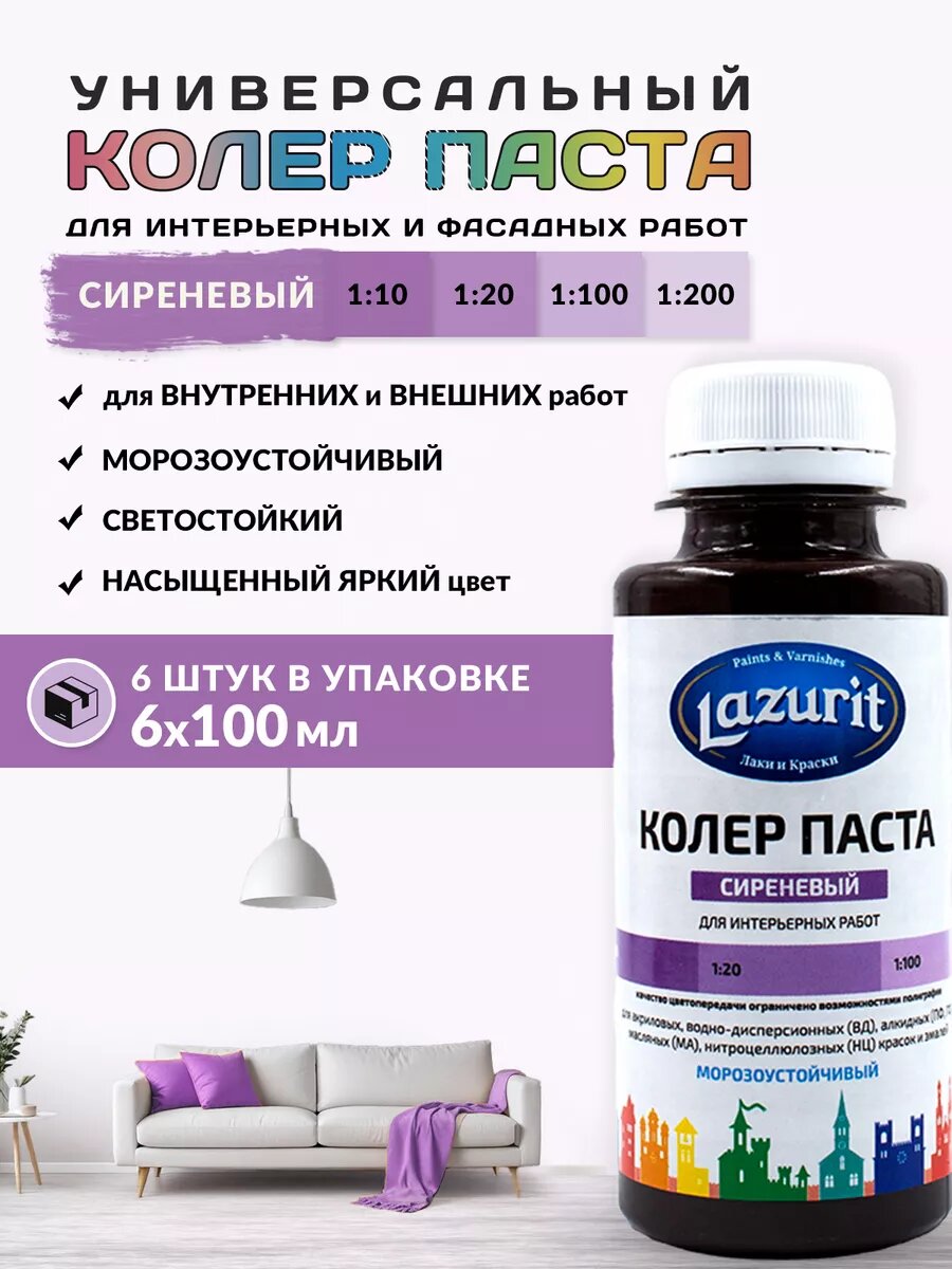 Купить Колер-паста LAZURIT сиреневый 100 мл/6шт