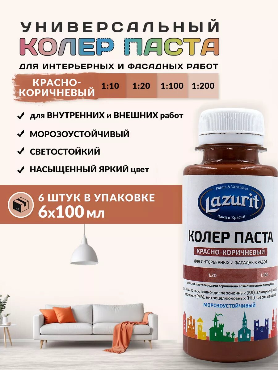Колер-паста LAZURIT красно-коричневый 100 мл/4шт