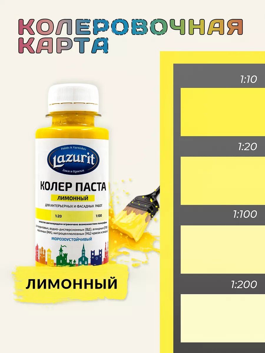 Колер-паста LAZURIT лимонный 100 мл/1шт