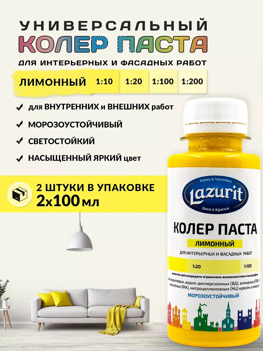 Купить Колер-паста LAZURIT лимонный 100 мл/2шт