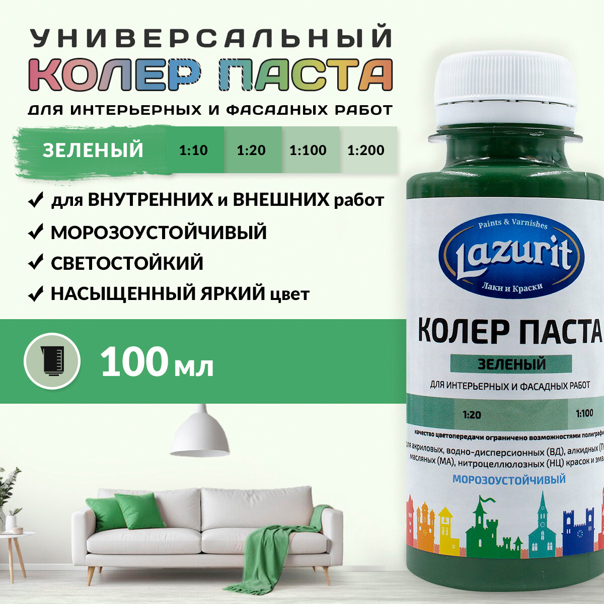 Колер-паста LAZURIT зеленый 100 мл/1шт