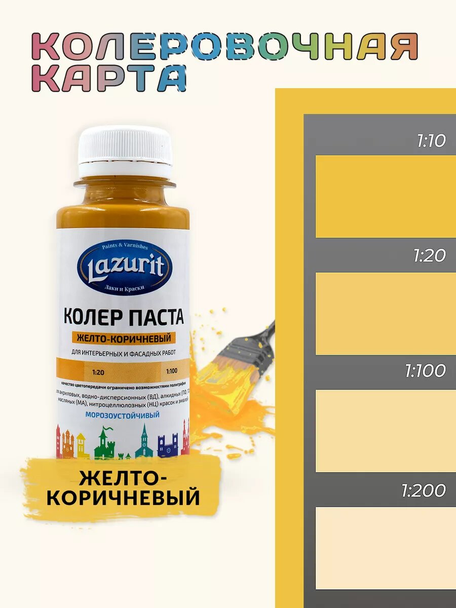 Купить Колер-паста LAZURIT желто-коричневый 100 мл/6шт