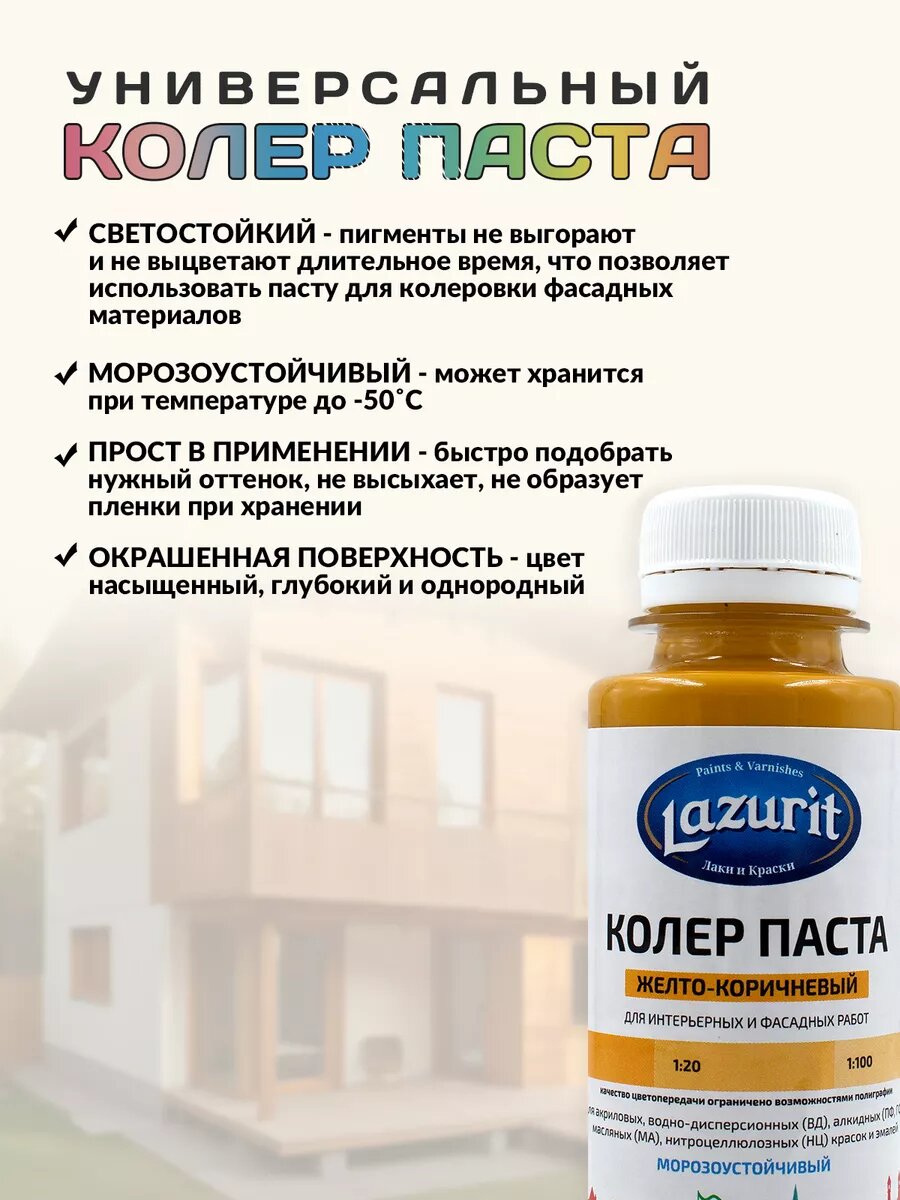 Ниже Вы можете прочитать отзывы на Колер-паста LAZURIT желто-коричневый 100 мл/6шт, ознакомится с подробными характеристиками, посмотреть интересные обзоры и фотографии на Колер-паста LAZURIT желто-коричневый 100 мл/6шт.