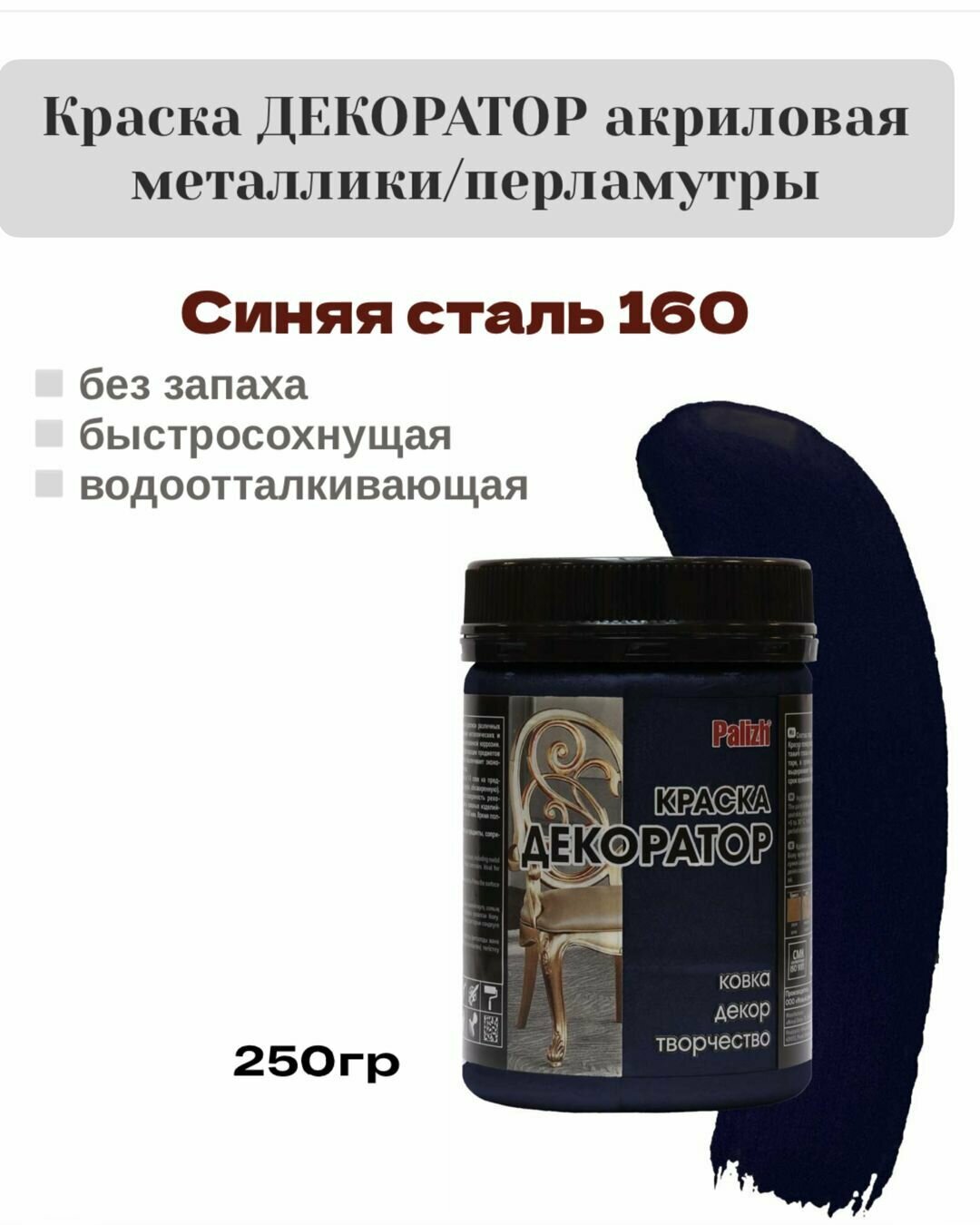 СохранитьКраска Декоратор акриловая быстросохнущая Palizh перламутр Синяя сталь 0,25кг интересное: