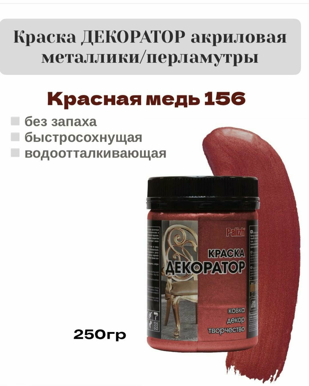 СохранитьКраска Декоратор акриловая быстросохнущая Palizh перламутр Красная медь 0,25кг интересное:
