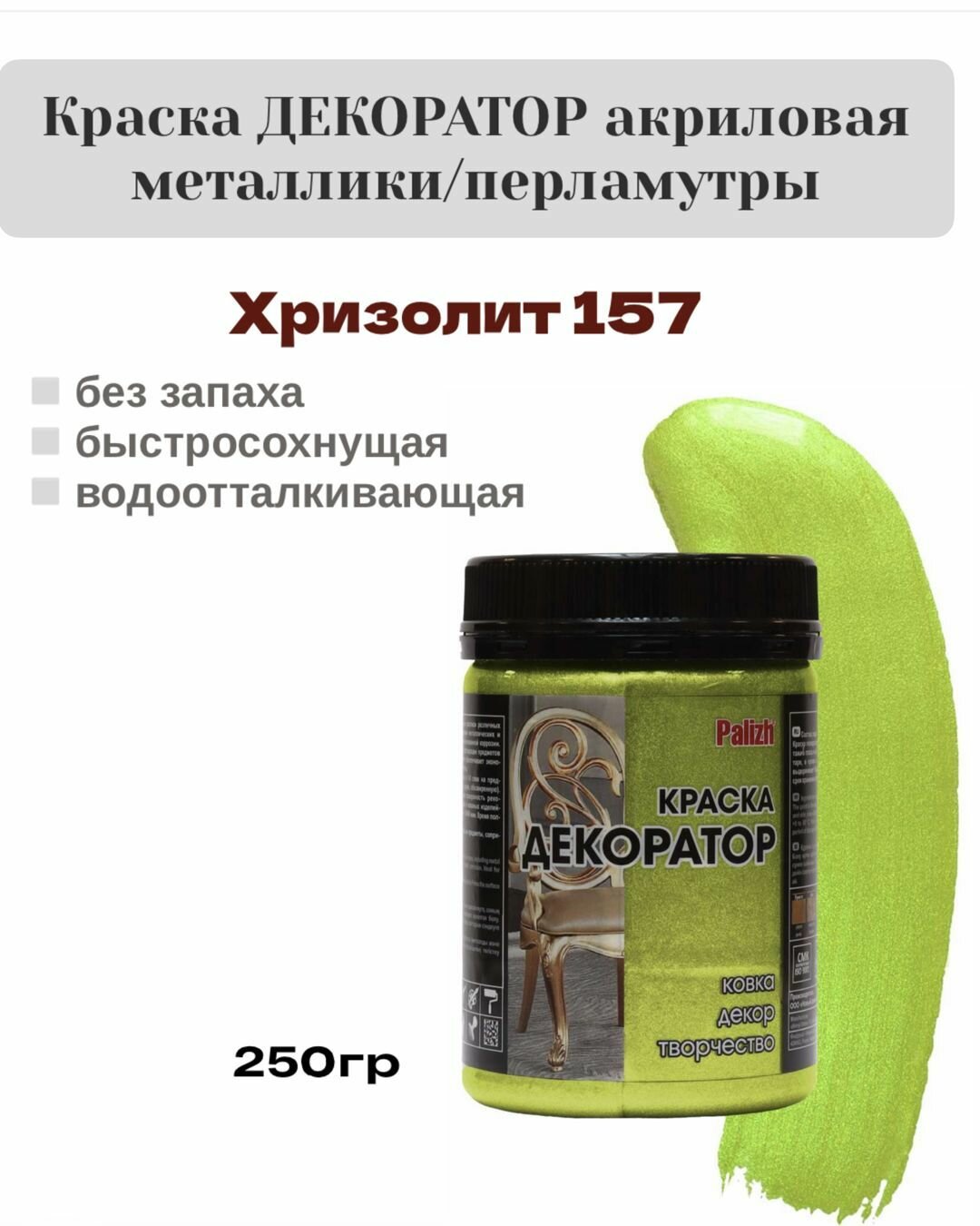 Купить Краска Декоратор акриловая быстросохнущая Palizh перламутр Хризолит 0,25кг