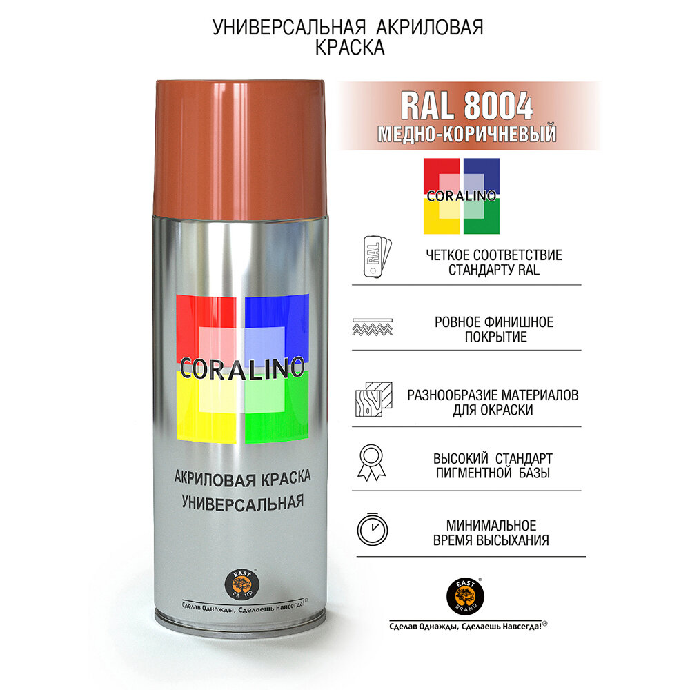 Эмаль-спрей акриловая CORALINO RAL8004 медно-коричневый 200 г интересное: