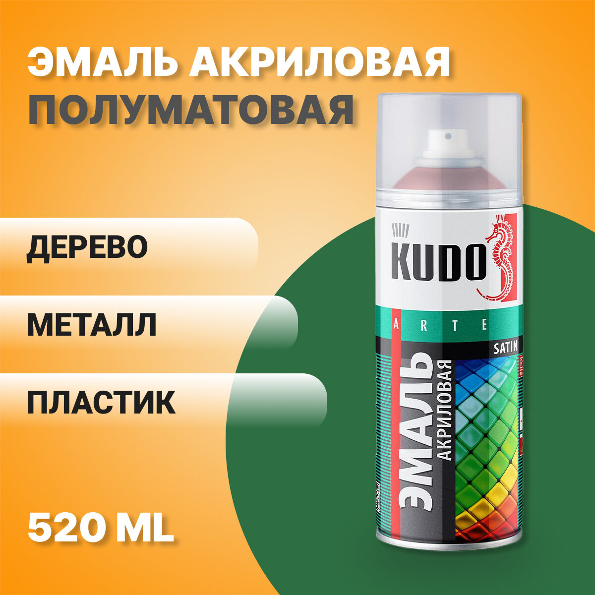 Эмаль универсальная акриловая satin RAL 6005 (темно-зеленая) KUDO 520мл. /кор.6шт./ KU-0А6005 KUDO KU-0A6005 | цена за 1 шт