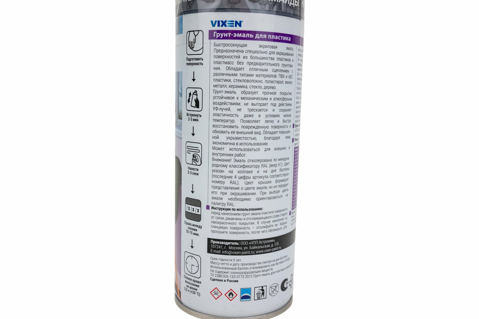 | Дополнительная информация | Грунт-эмаль для пластика Vixen-9005, 520 мл |