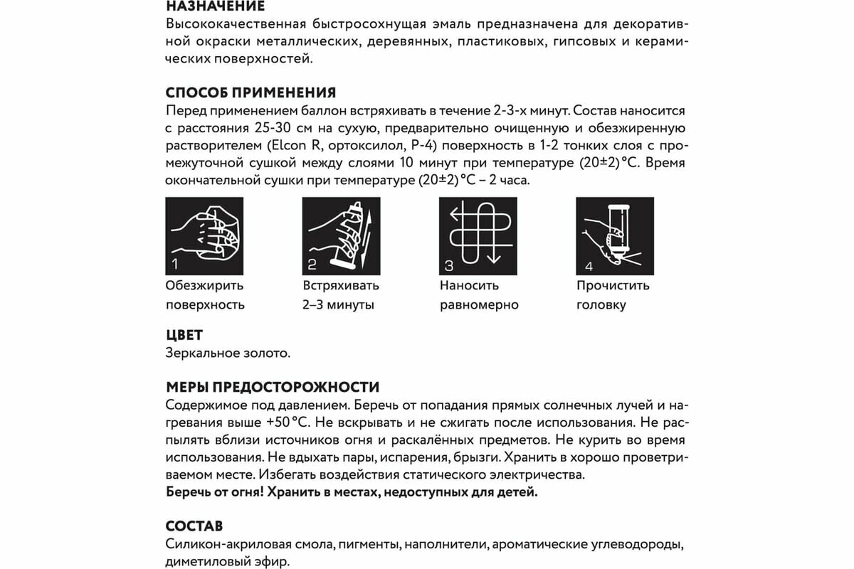 Аэрозольная акриловая краска металлик Elcon Decor, 520 мл, зеркальное золото