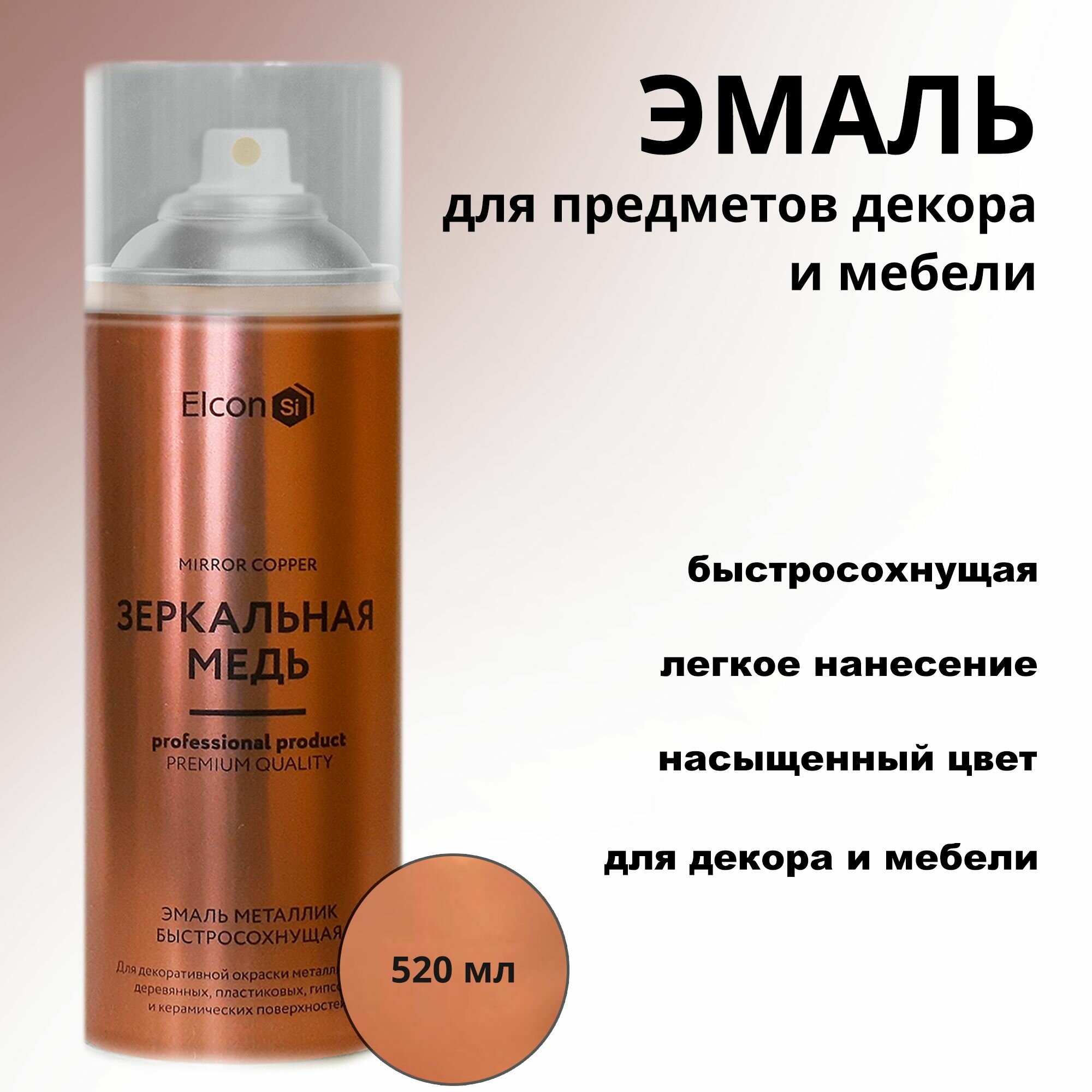 Аэрозольная акриловая краска металлик Elcon Decor, 520 мл, зеркальная медь