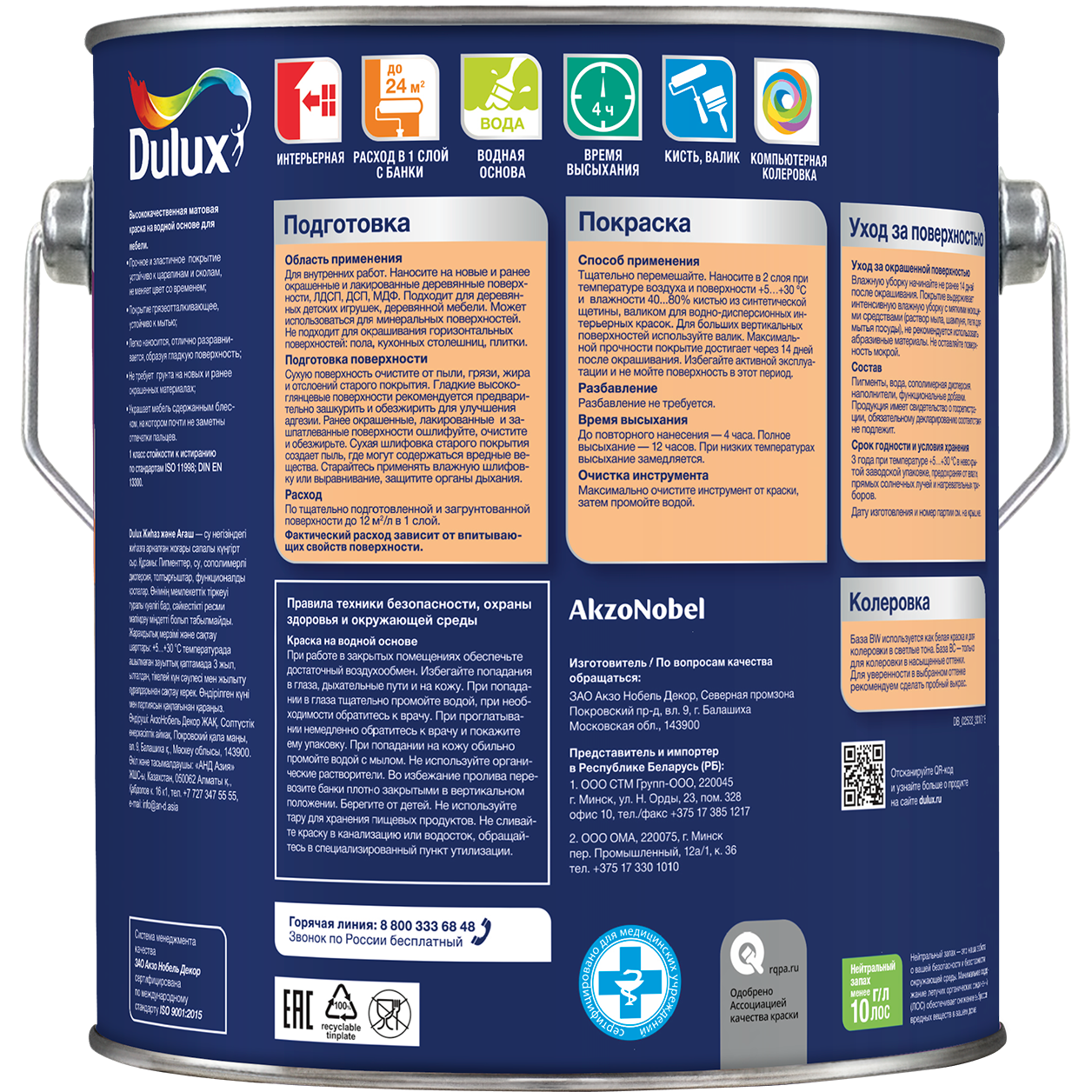 Dulux / Дюлакс Легко Обновить - Мебель и Дерево матовая износостойкая краска на водной основе (2л)