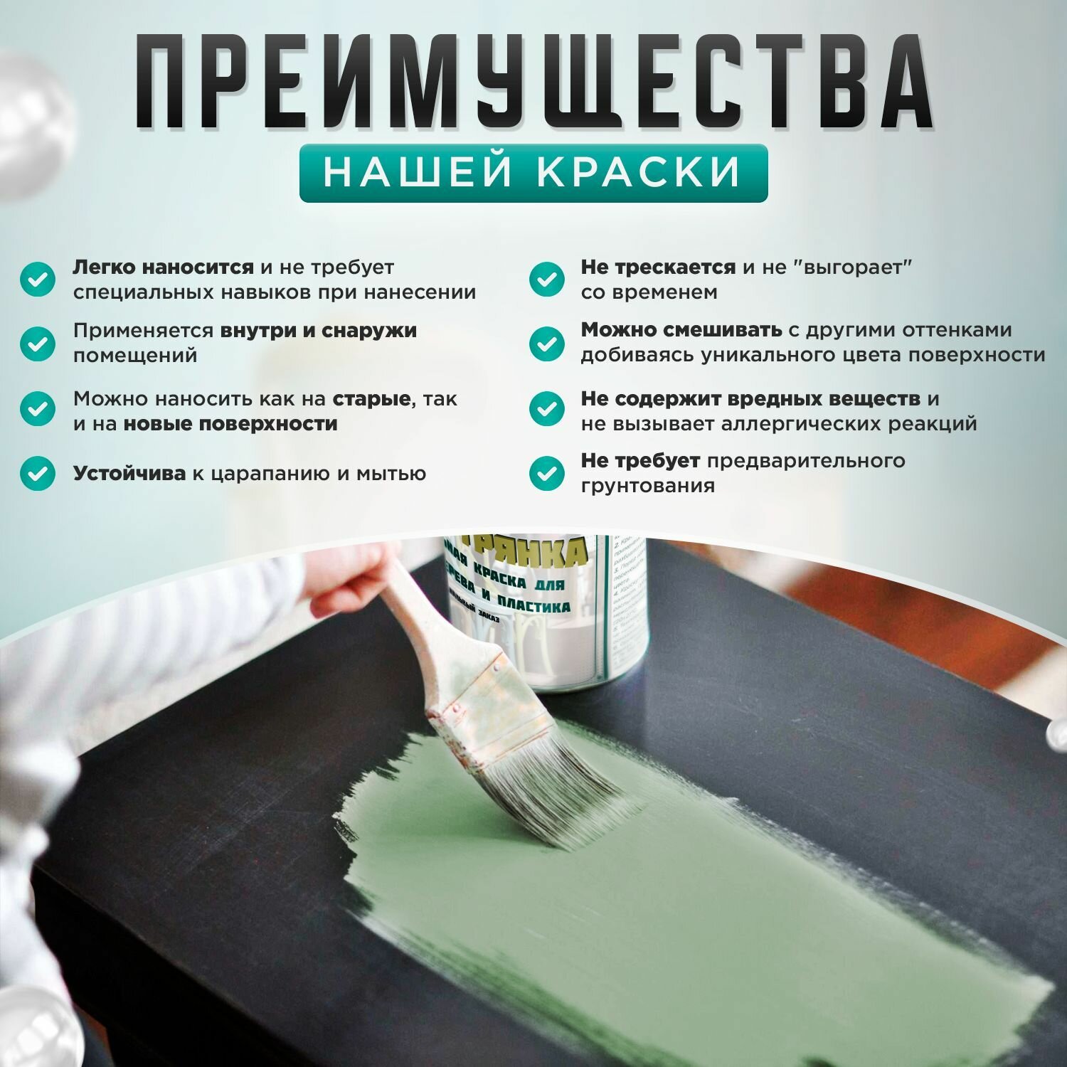 Ниже Вы можете прочитать отзывы на Краска для мебели, дерева и пластика матовая без запаха Гумвнутрянка мятный 1 литр., ознакомится с подробными характеристиками, посмотреть интересные обзоры и фотографии на Краска для мебели, дерева и пластика матовая без запаха Гумвнутрянка мятный 1 литр..