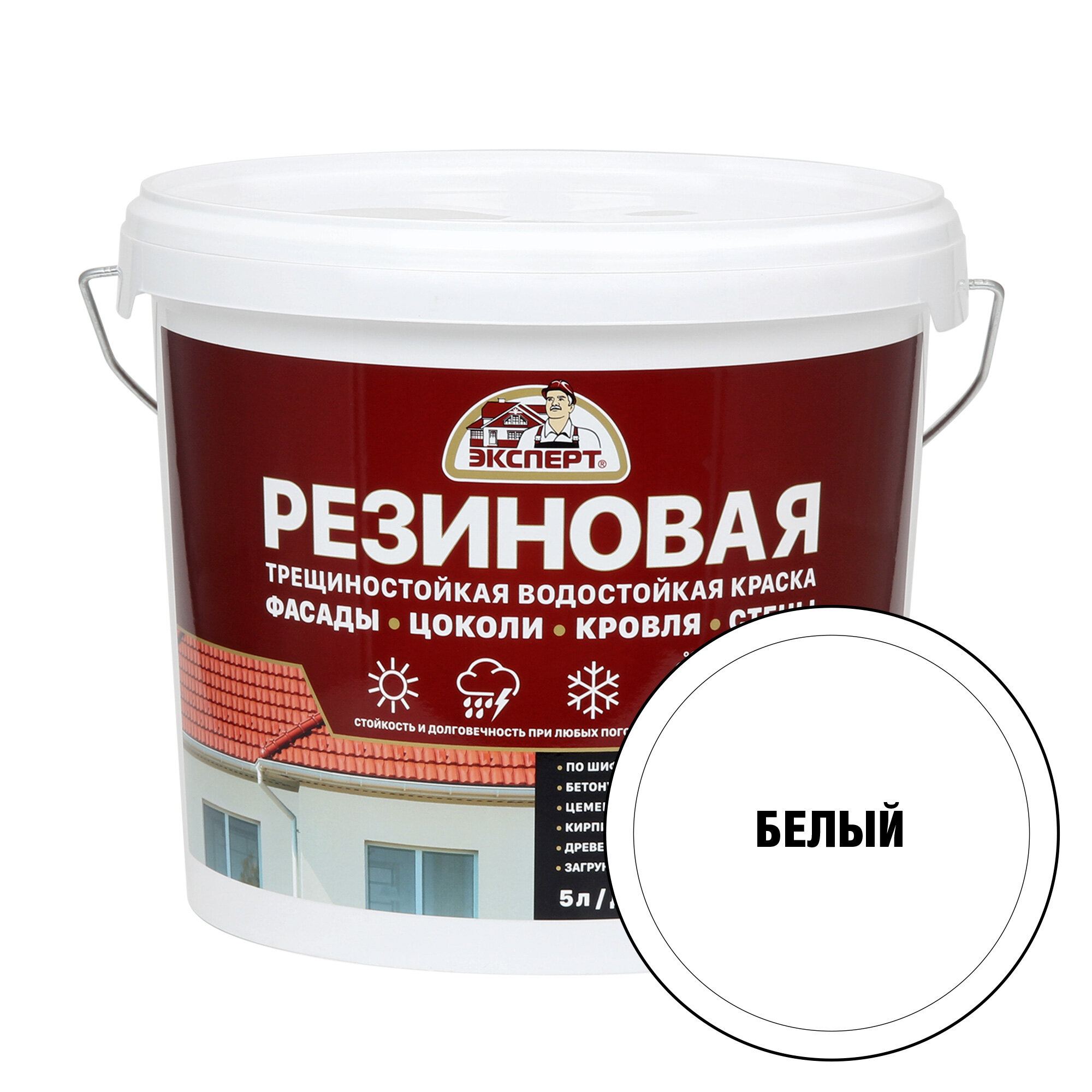 Эксперт Резиновая трещиностойкая краска белый База А 5л
