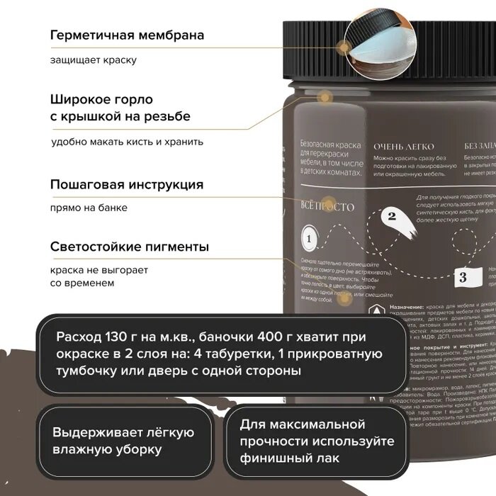 СохранитьКраска Aturi Design Mia для мебели и декора, меловой бархат; Цвет: Крепкий кофе, 400гр интересное: