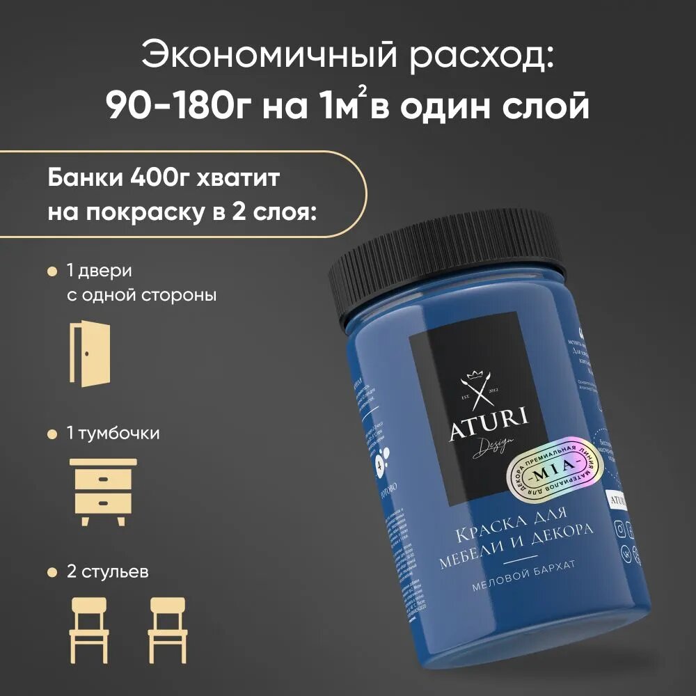 Матовая краска для мебели 0,4 кг без запаха, меловая быстросохнущая мебельная Aturi Design Mia д. Цвет: Сензария