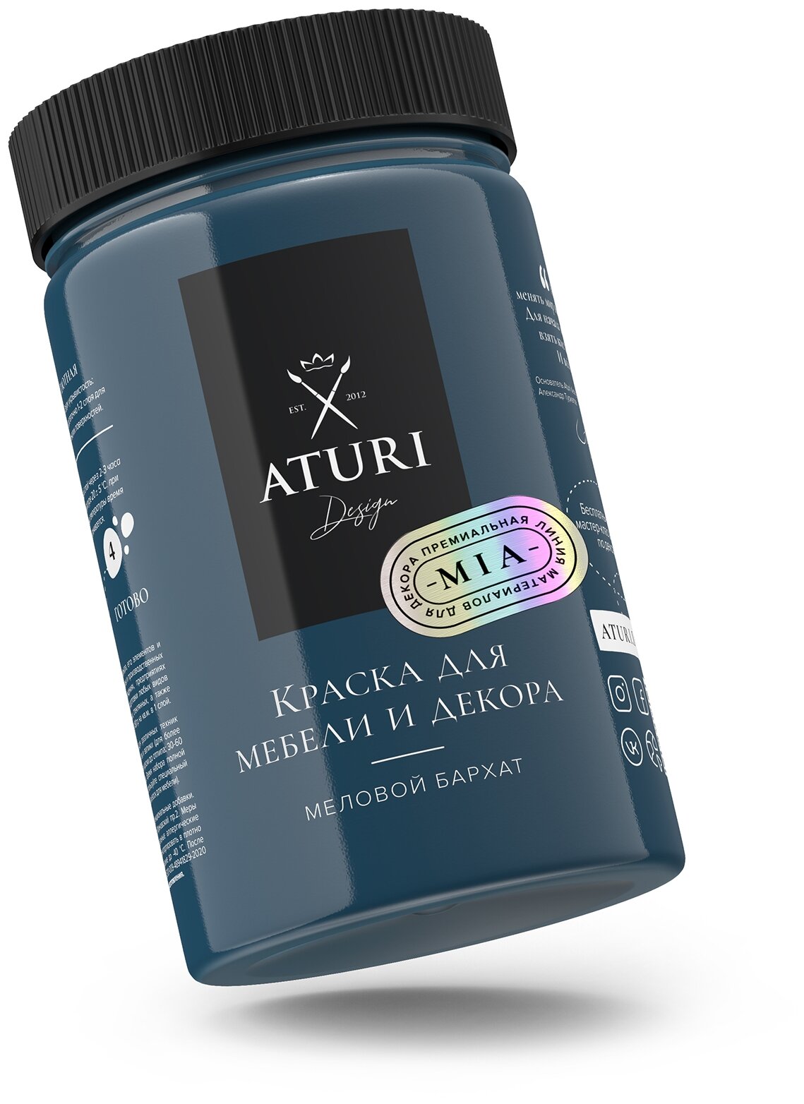 Краска Aturi Design Mia для мебели и декора, Без запаха; Цвет: Ночное притяжение, Быстросохнущая, Матовая, синий 400гр