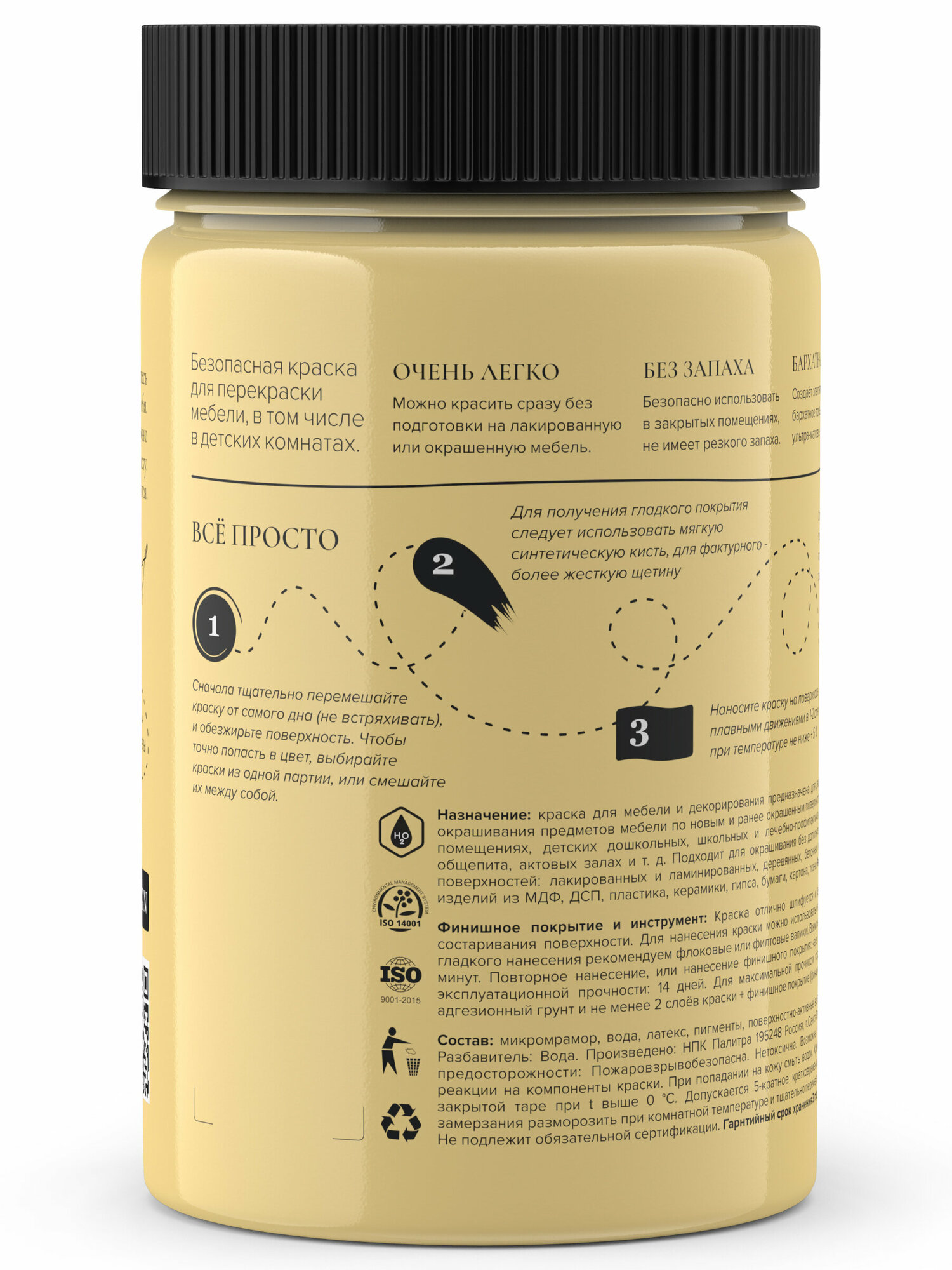 Краска Aturi Design Краска для мебели и декора. Без запаха. Цвет: Черный бархат. Быстросохнущая. Матовая, 0,4 кг, Черный
