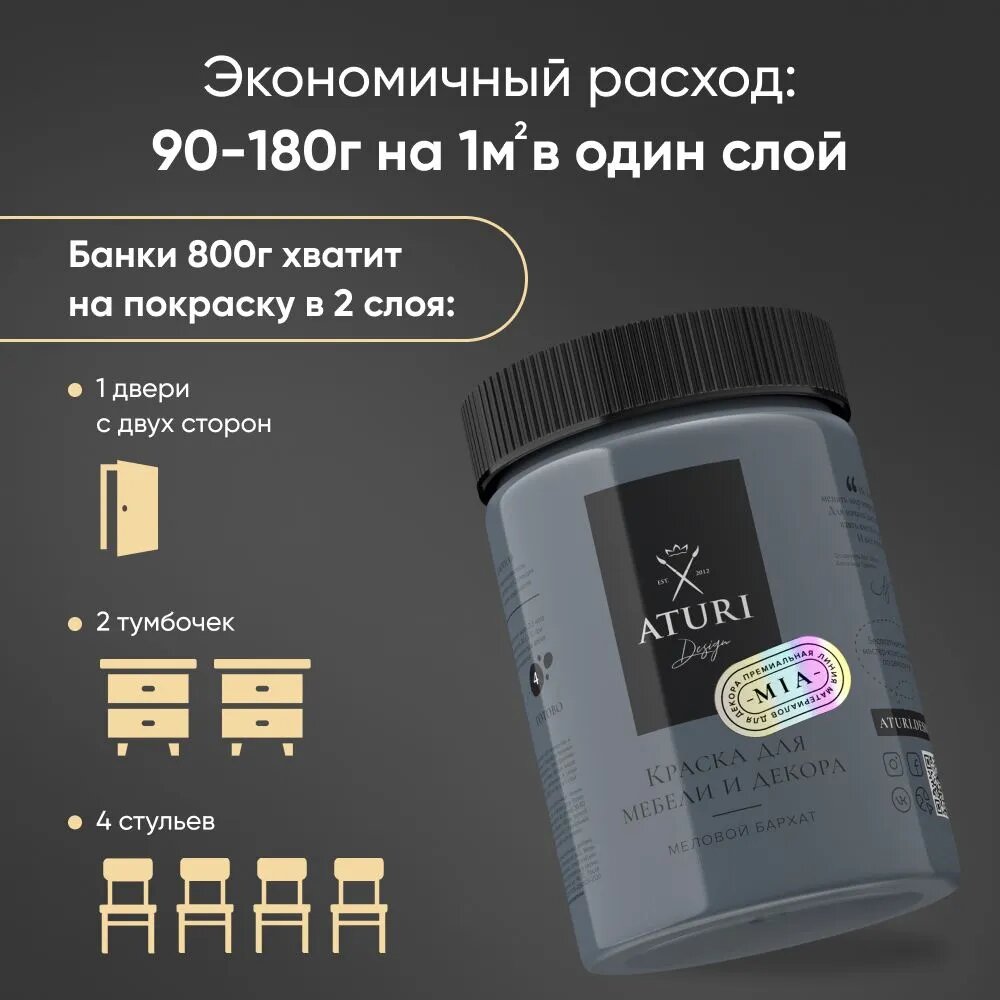 Матовая краска для мебели 0,8 кг без запаха, меловая быстросохнущая мебельная Aturi Design Mia для декора, кухни и кухонных фасадов, дверей, пластика и металла. Цвет: Черный бархат, чёрный