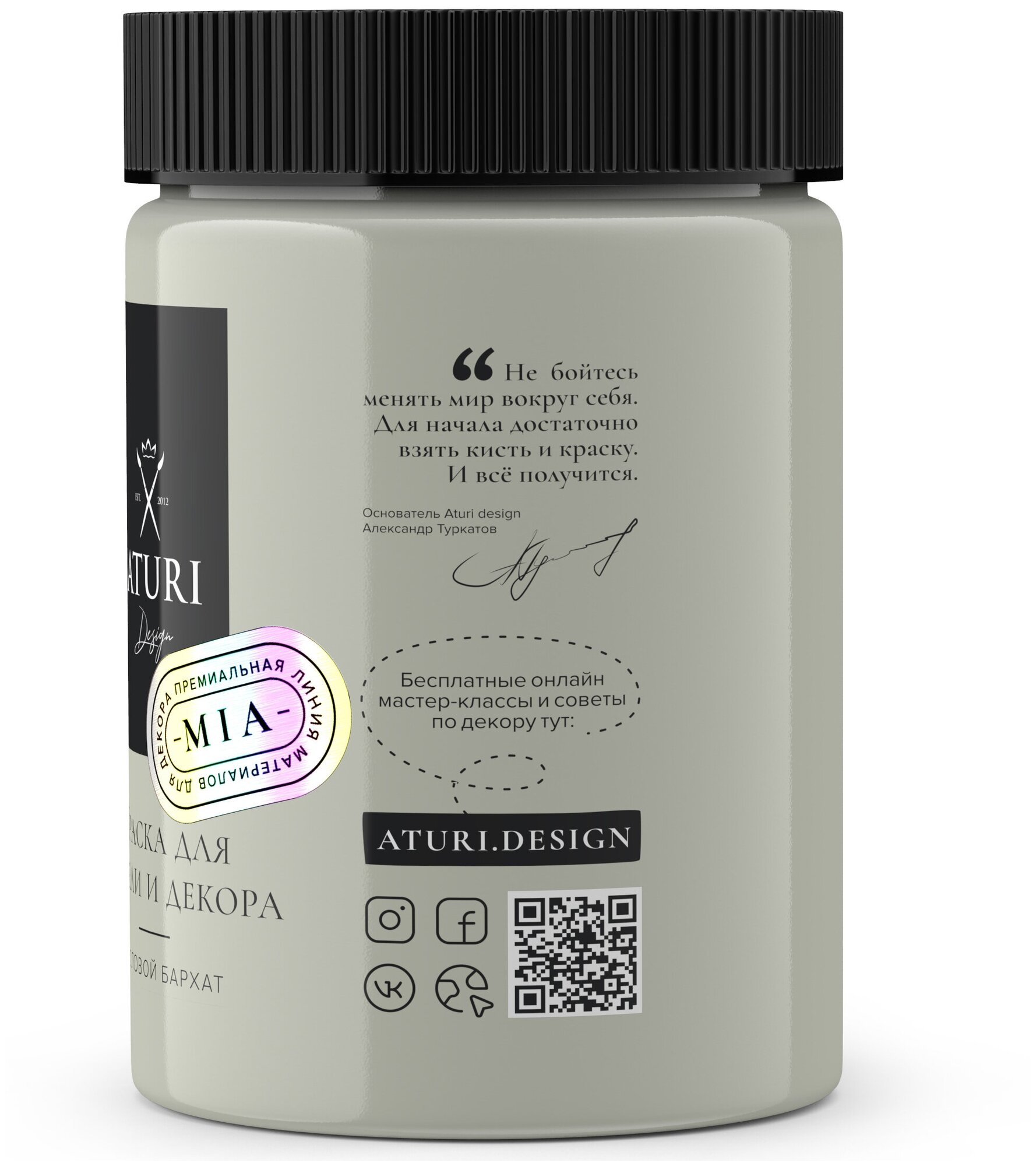 ATURI Design краска для мебели и декора меловой бархат mia нежный пепел T1-00012309