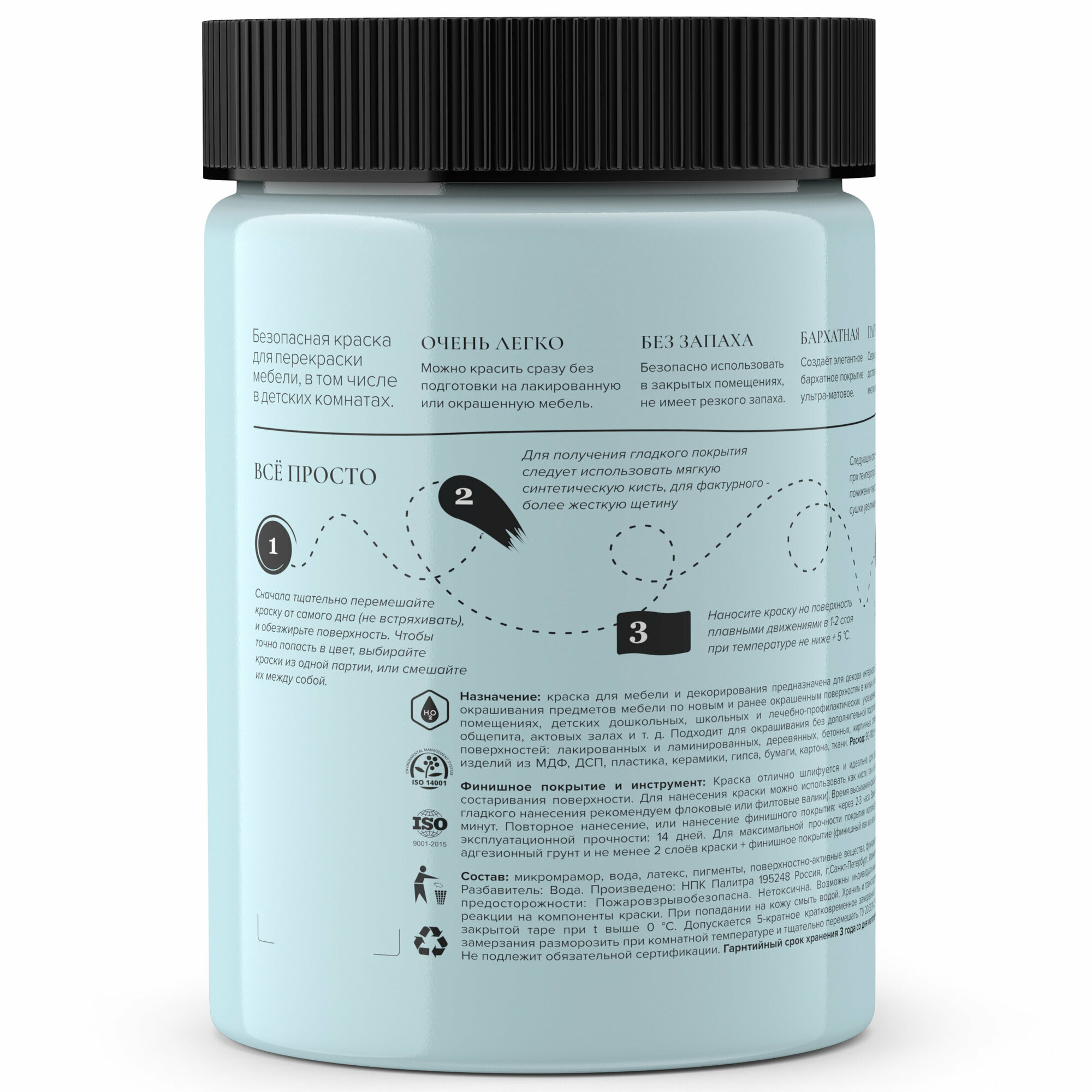 Краска Aturi Design Краска для мебели и декора. Без запаха. Цвет: Черный бархат. Быстросохнущая. Матовая, 0,4 кг, Черный