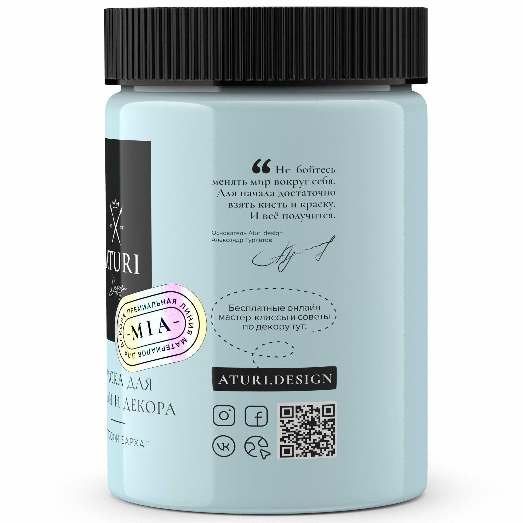 СохранитьКраска Aturi Design Mia для мебели и декора, меловой бархат; Цвет: Юный принц, 830гр интересное: