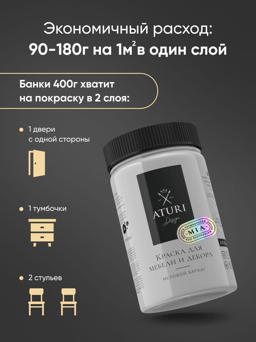 Краска меловая Aturi Design для мебели и декора MIA "Меловой Бархат" матовая белоснежный 0.4 кг