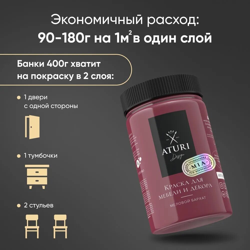 Краска Aturi Design Mia для мебели и декора, меловой бархат; Цвет: Глубокие чувства, 400гр