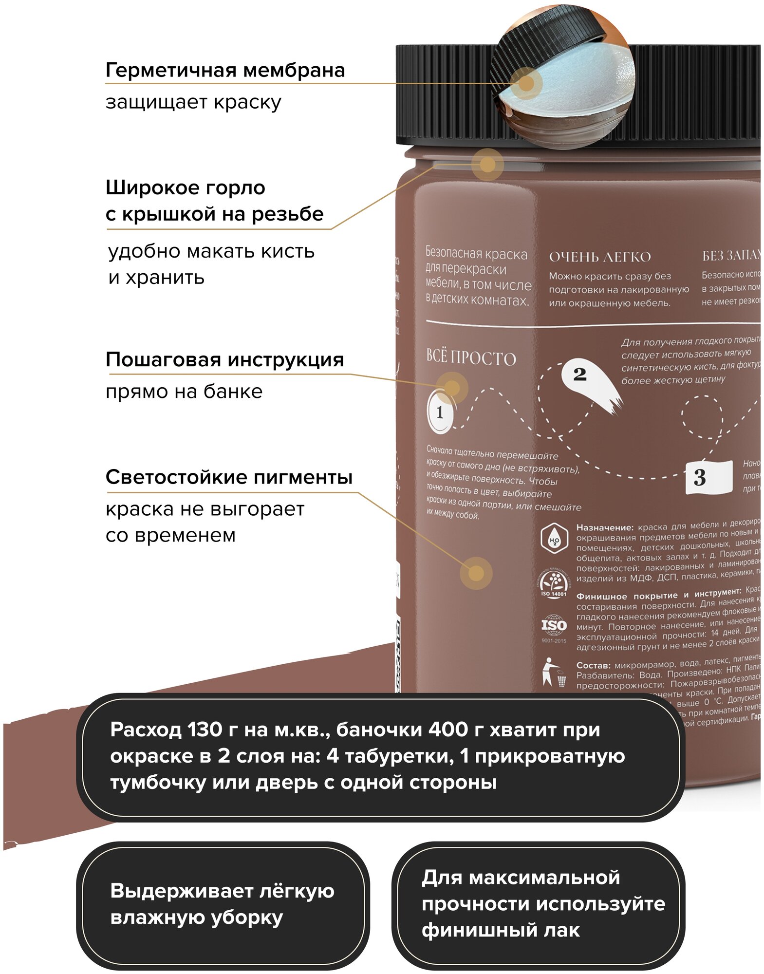 DARIA GEILER краска для мебели титановая Дарья Гейлер "Капучино" 500 мл, водная, матовое покрытие, коричневая