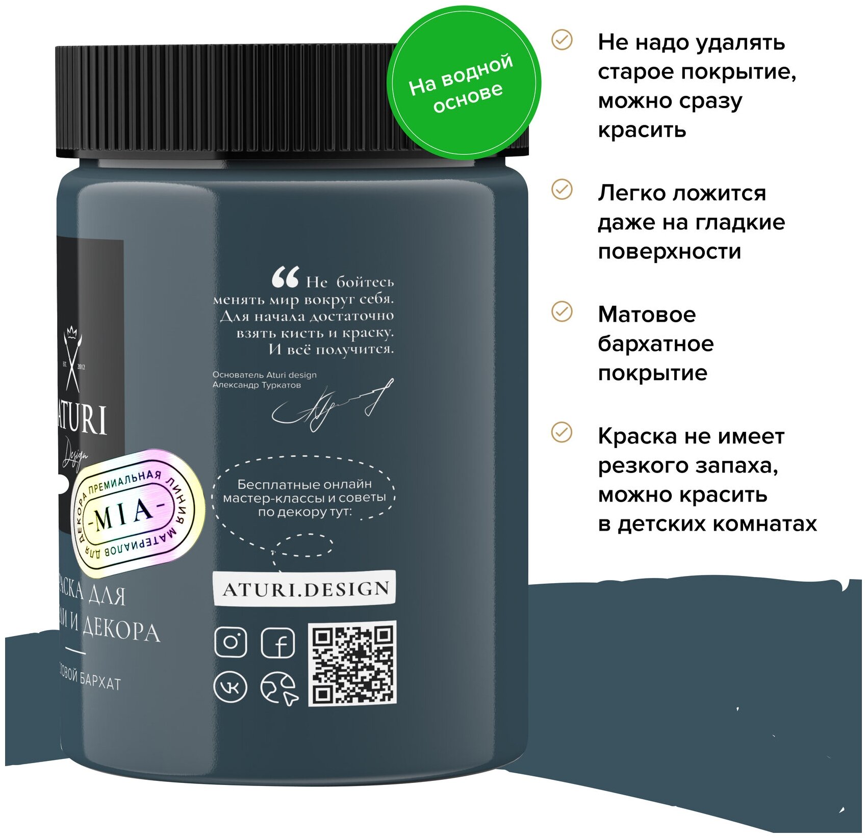 Матовая краска для мебели 0,4 кг без запаха, меловая быстросохнущая мебельная Aturi Design Mia для декора, кухни и кухонных фасадов, дверей, пластика и металла. Цвет: Сердце океана, темно-синий