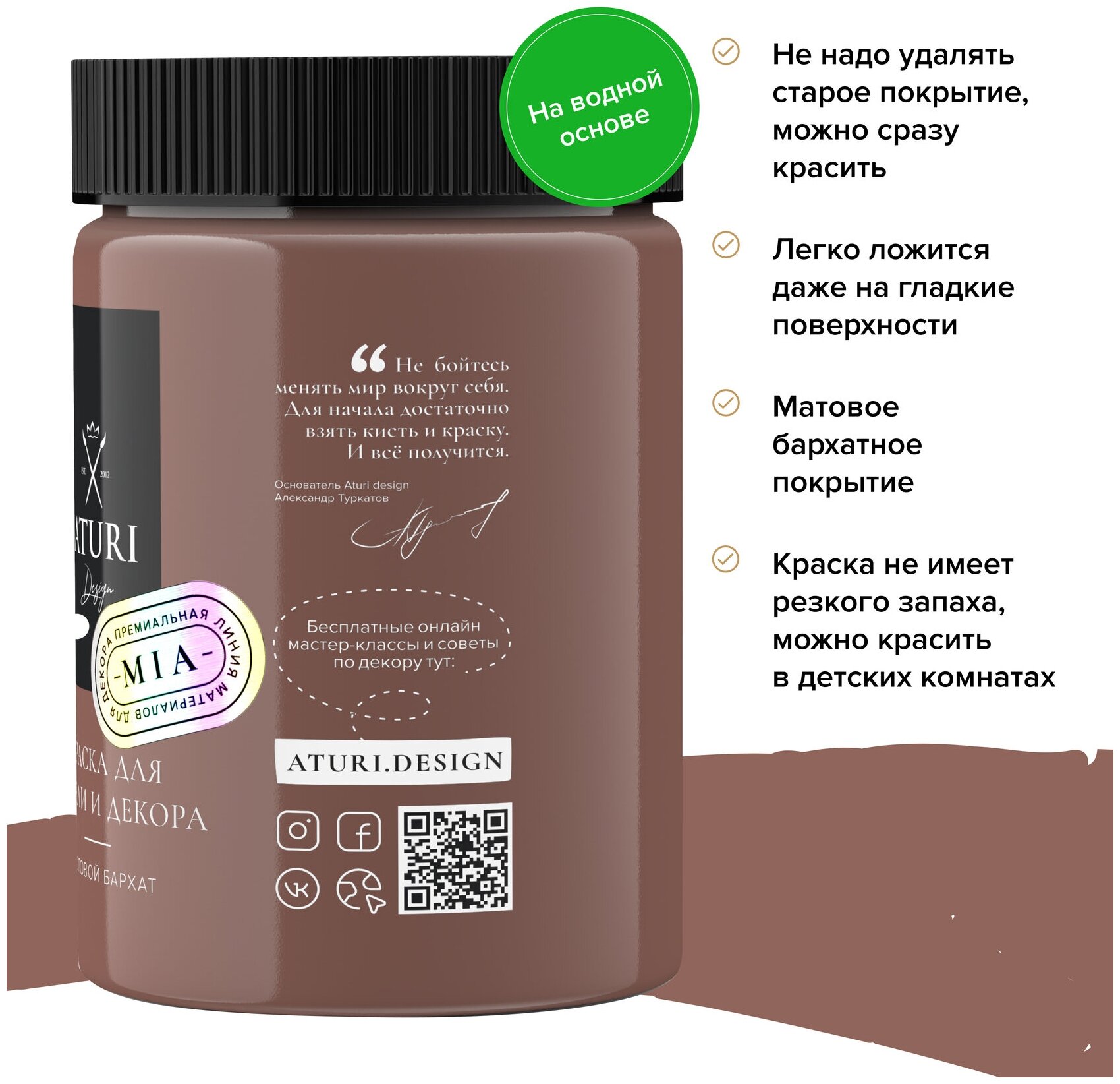 Краска Aturi Design Mia для мебели и декора, меловой бархат; Цвет: Крепкий кофе, 400гр