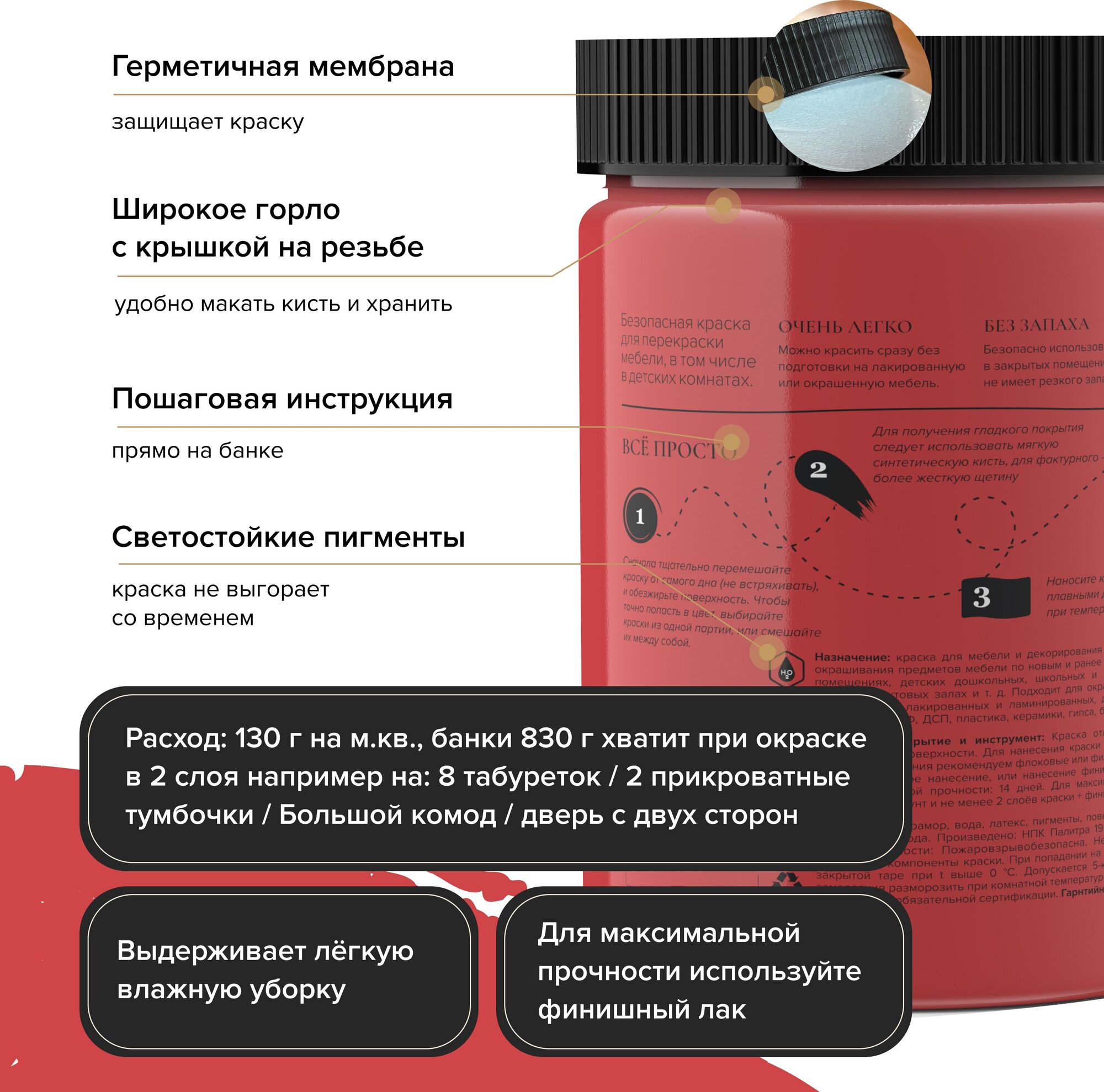 Матовая краска для мебели 0,4 кг без запаха, меловая быстросохнущая Aturi Design Mia. Цвет: Красная помада