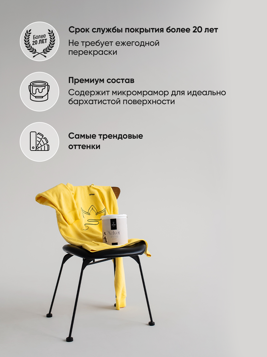 Краска интерьерная для стен и обоев Aturi Design Velvet цвет: Деликатный кашемир 3,5 кг. Матовая, моющаяся