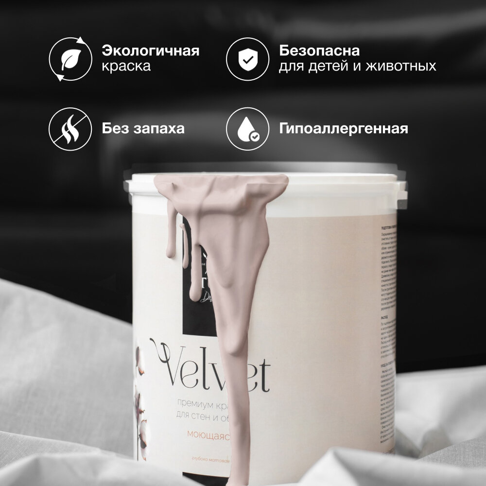 Краска для стен и обоев Aturi Design Velvet Цвет: Тауп, серо-коричневый, 1,4 кг. Интерьерная, матовая, без запаха