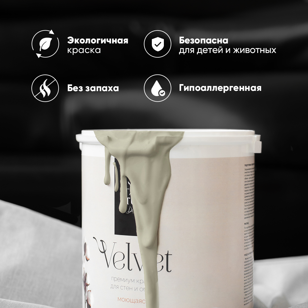 Краска для стен и обоев Aturi Design Velvet Цвет: Тауп, серо-коричневый, 1,4 кг. Интерьерная, матовая, без запаха