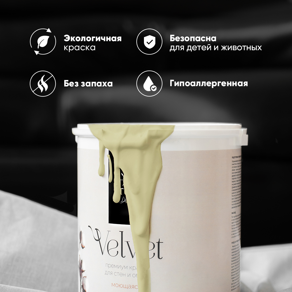 Краска Aturi Design Velvet интерьерная, для стен, моющаяся, цветная; Цвет: Тропический хаки, 3,5 кг