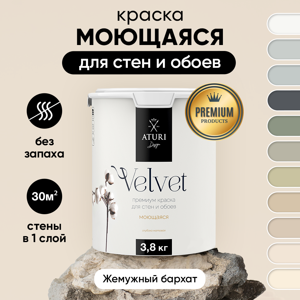 Краска интерьерная для стен и обоев Aturi Design Velvet цвет: Деликатный кашемир 3,5 кг. Матовая, моющаяся