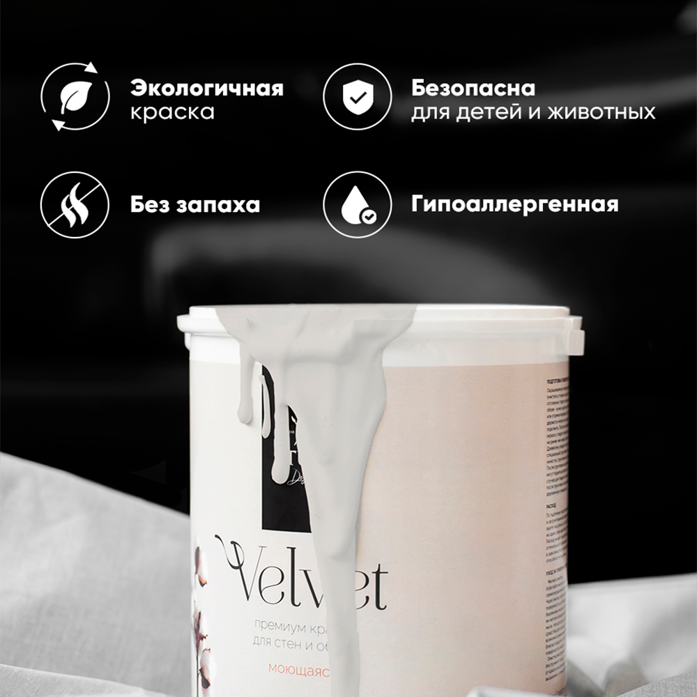Краска Aturi Design Mia интерьерная, для стен, моющаяся; Цвет: Жемчужный бархат, 1,5 кг