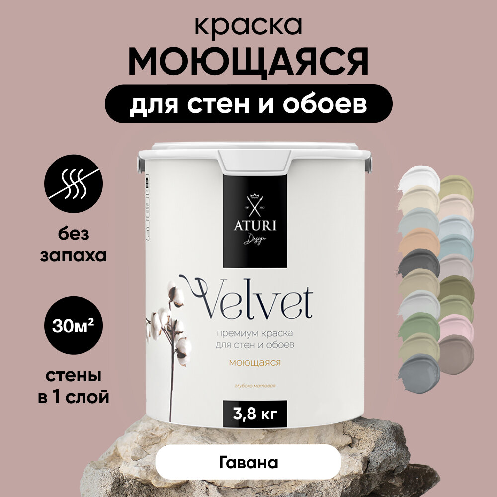 Краска для стен и обоев Aturi Design Velvet Цвет: Тауп, серо-коричневый, 3,5 кг. Интерьерная, матовая, без запаха