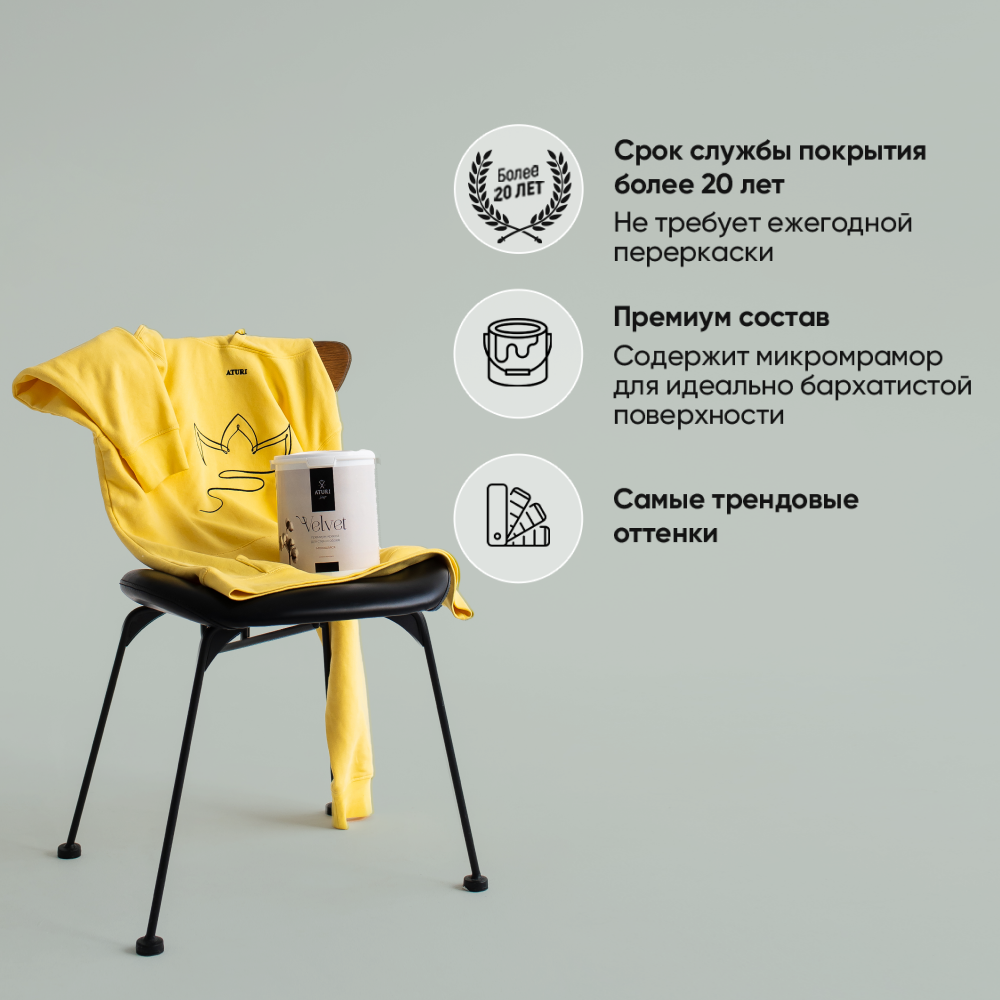 Краска интерьерная для стен и обоев 3,5 кг Aturi Design Velvet, Безмятежность, моющаяся, матовая, серая, без запаха
