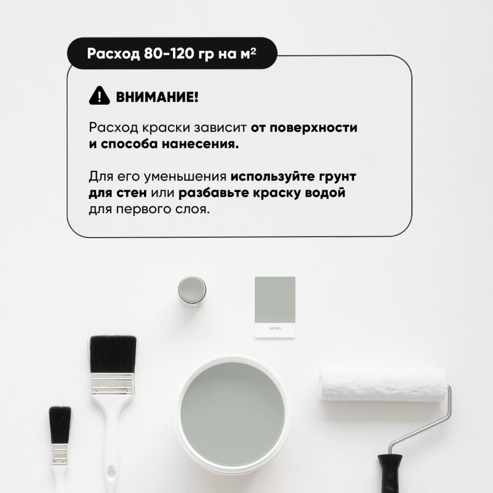 Краска Aturi Design Mia интерьерная, для стен, моющаяся; Цвет: Северная полынь, 1,5 кг