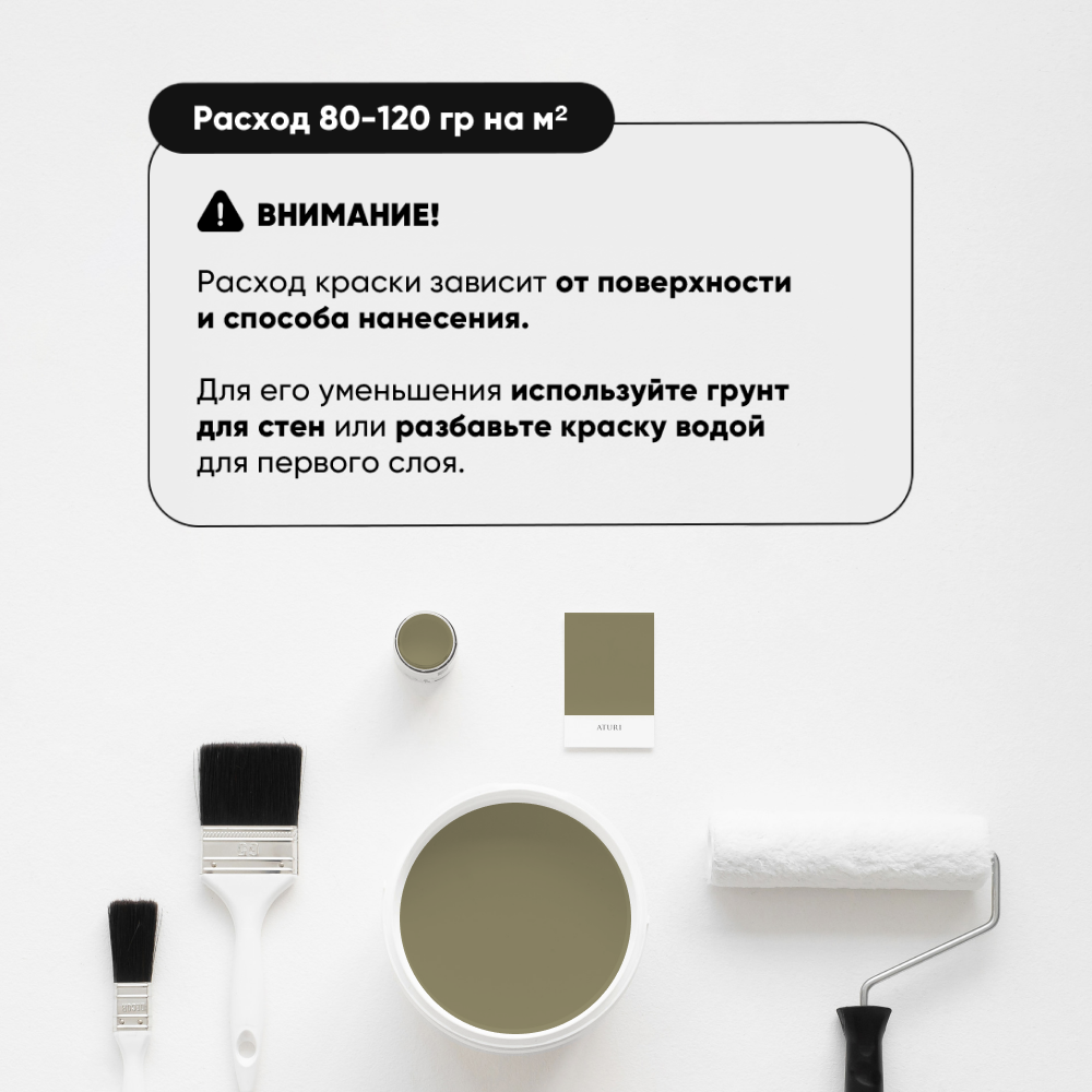 Краска Aturi Design Velvet интерьерная, для стен, моющаяся, цветная; Цвет: Тропический хаки, 3,5 кг