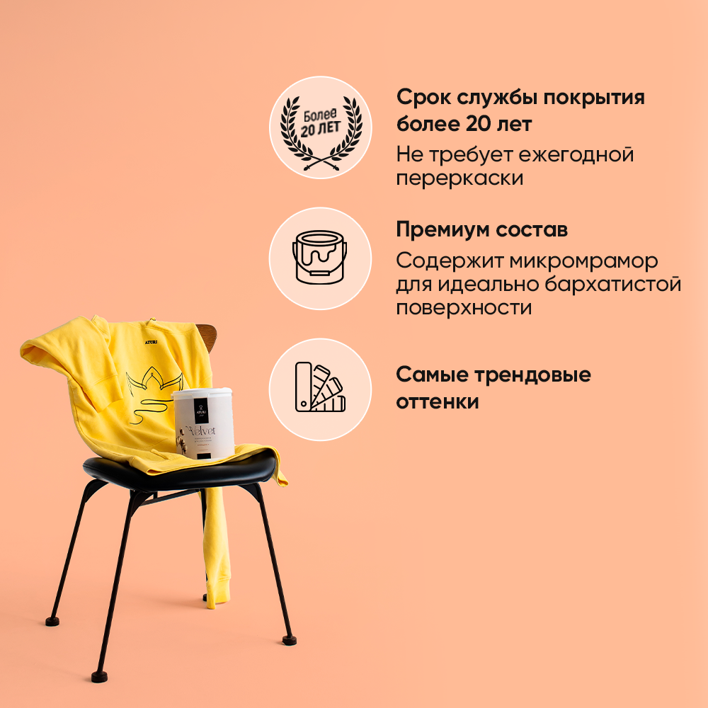Краска интерьерная для стен и обоев Aturi Design Velvet цвет: Деликатный кашемир 3,5 кг. Матовая, моющаяся