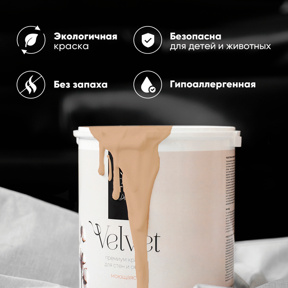 Краска интерьерная для стен и обоев Aturi Design Velvet цвет: Деликатный кашемир 1,4 кг. Матовая, моющаяся