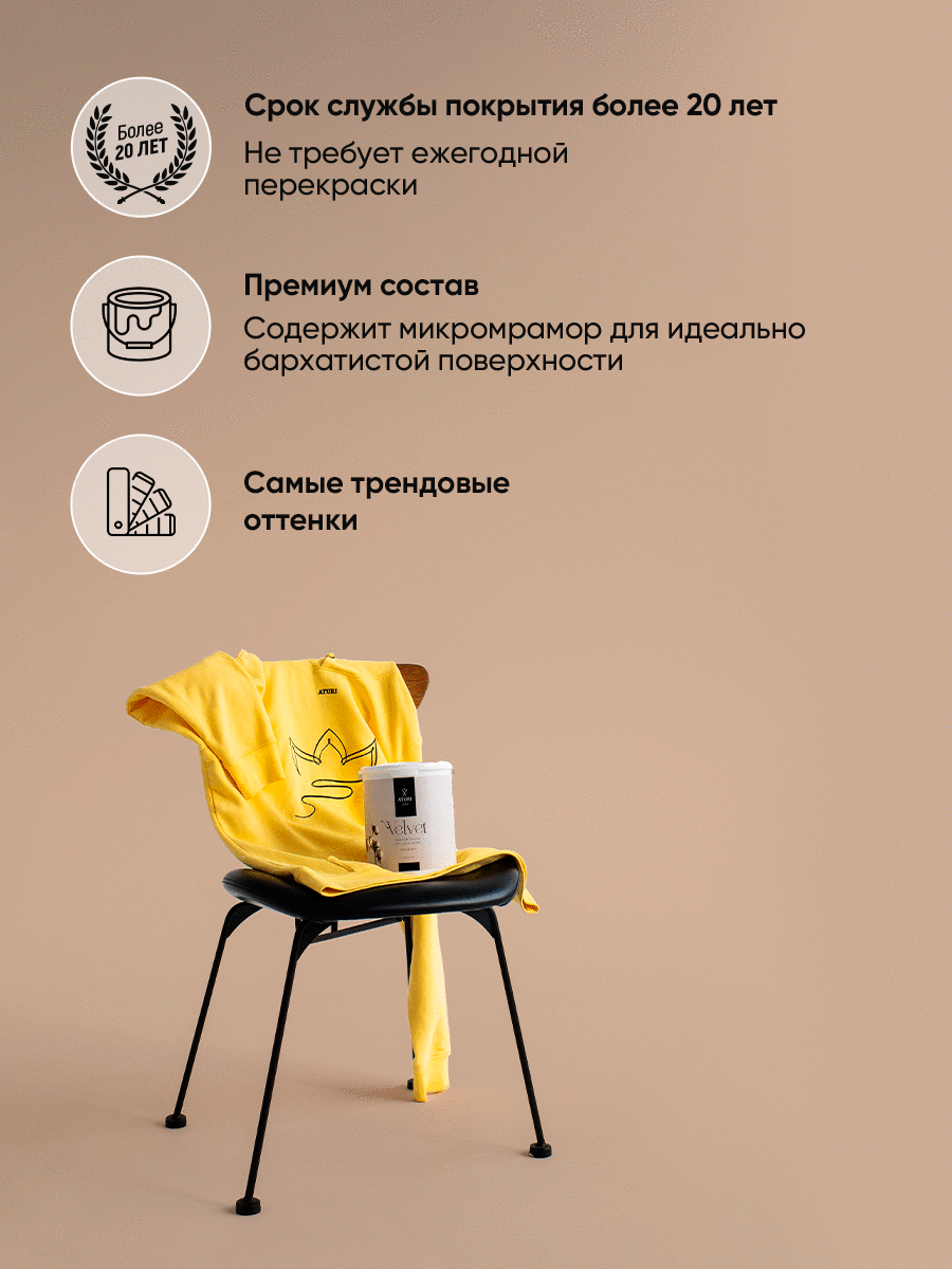 Краска интерьерная для стен и обоев Aturi Design Velvet цвет: Деликатный кашемир 3,5 кг. Матовая, моющаяся