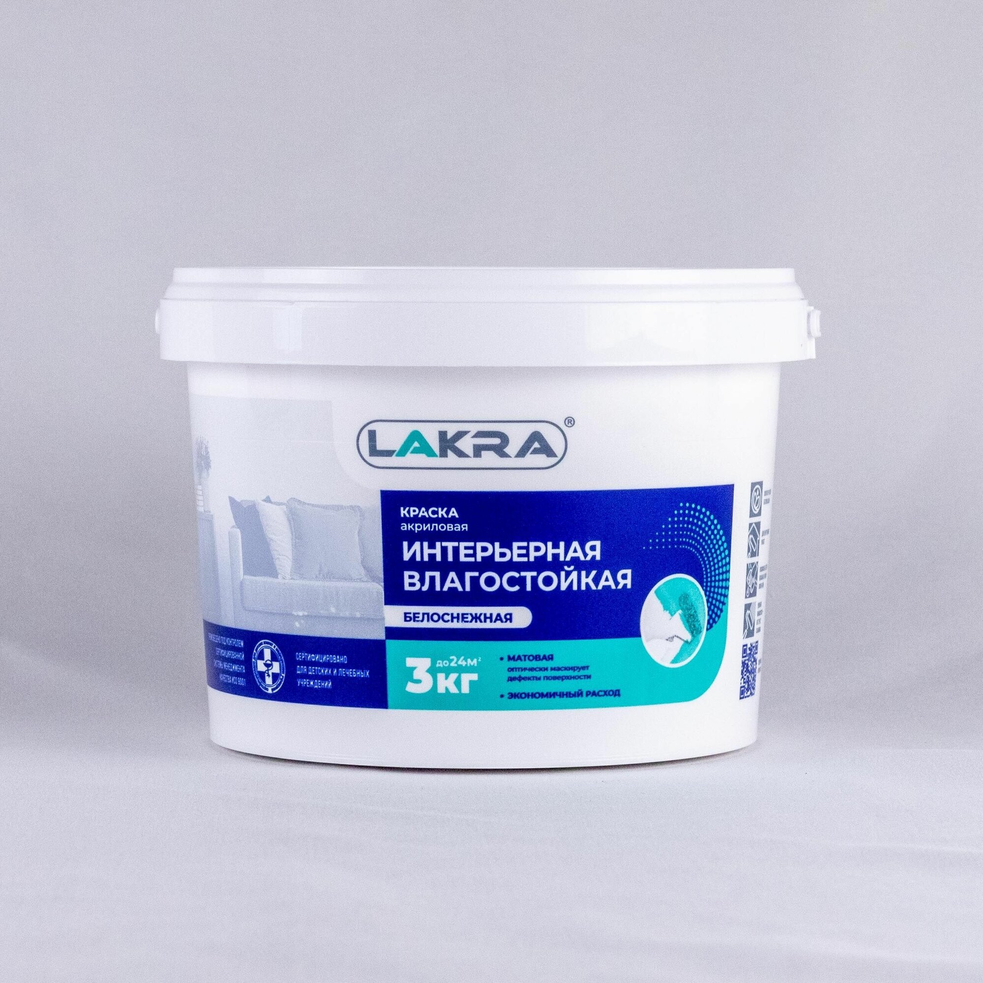Краска акриловая интерьерная влагостойкая Лакра белоснежная 3кг