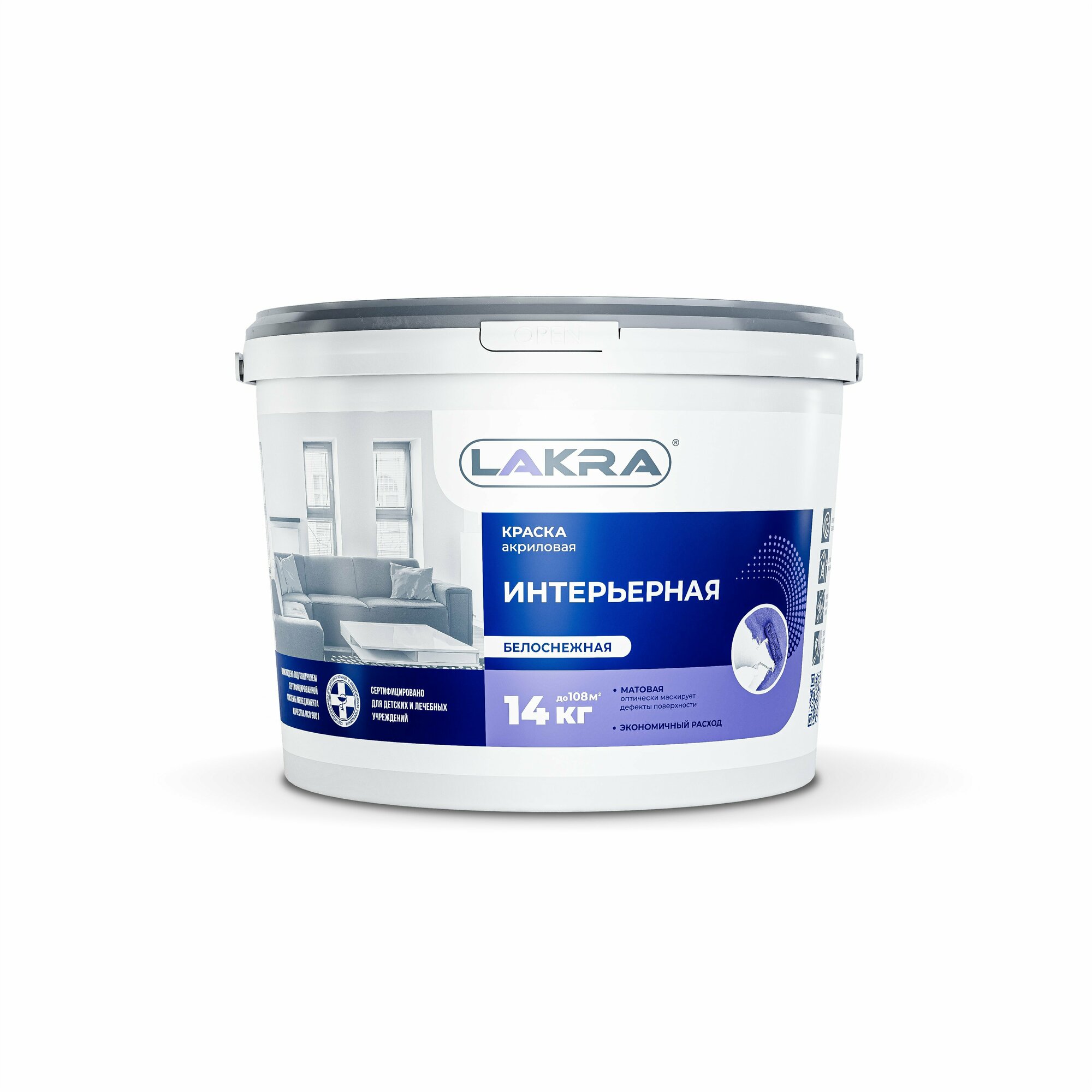 Краска интерьерная акриловая Лакра белоснежная матовая, 14кг