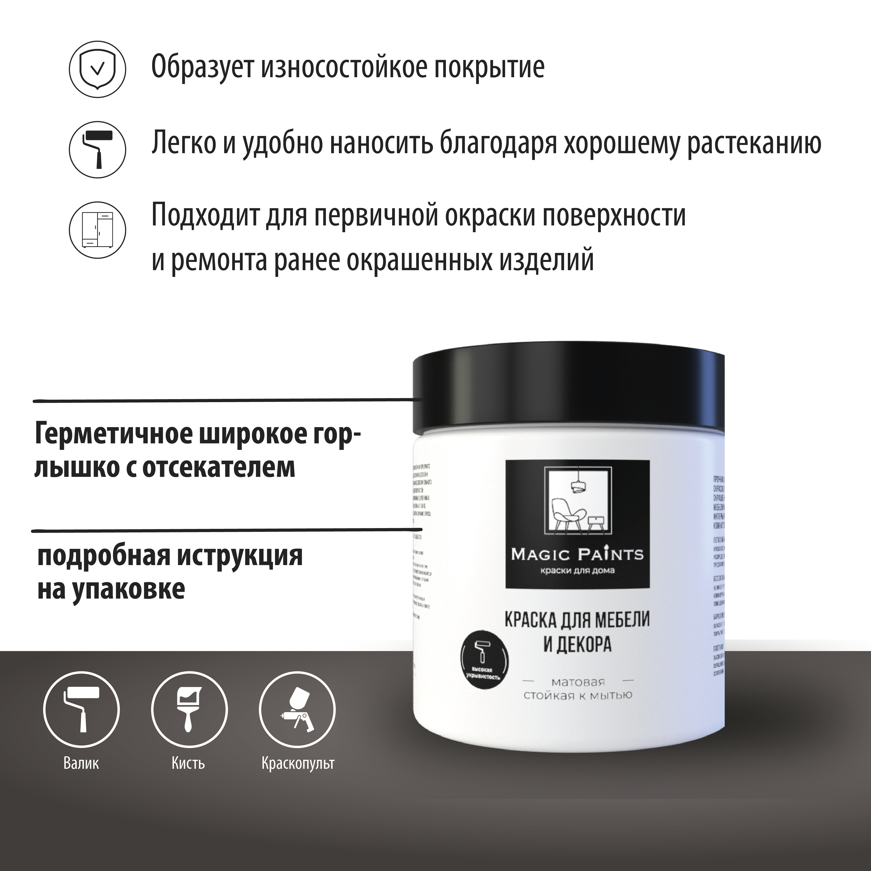 Матовая краска для мебели и декора Magic Paints без запаха для стен потолков дерева кухни кухонных фасадов дверей стекла цвет Графит 0.65 кг