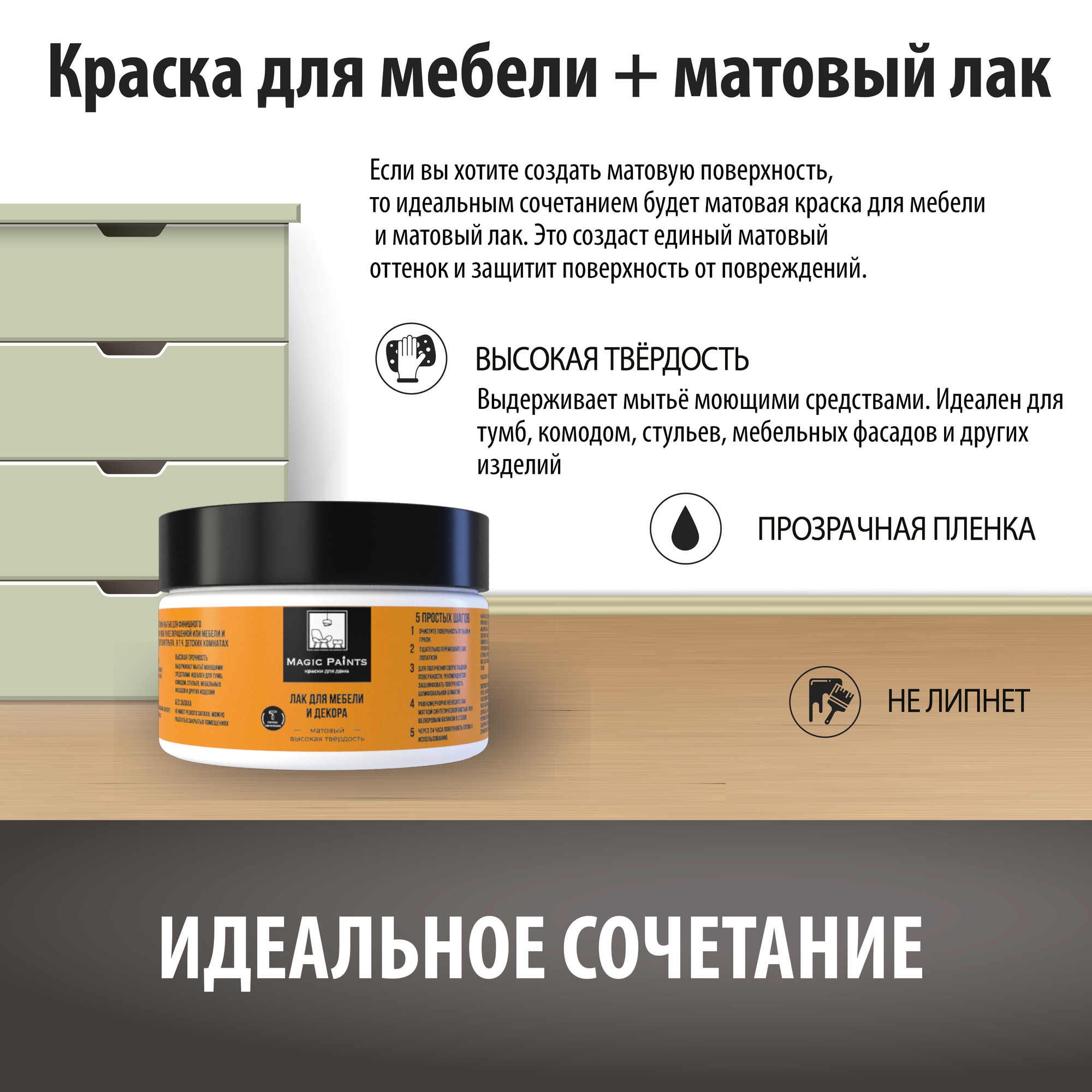 | Дополнительная информация | без запаха, на водной основе, для мебели, для декора, водоразбавляемая, быстросохнущая, матовая |