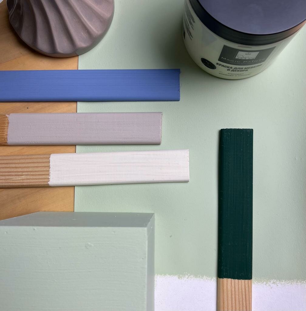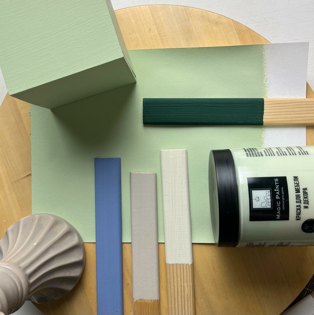 Матовая краска для мебели и декора Magic Paints без запаха для стен потолков дерева кухни кухонных фасадов дверей стекла цвет Фисташковый 0.65 кг